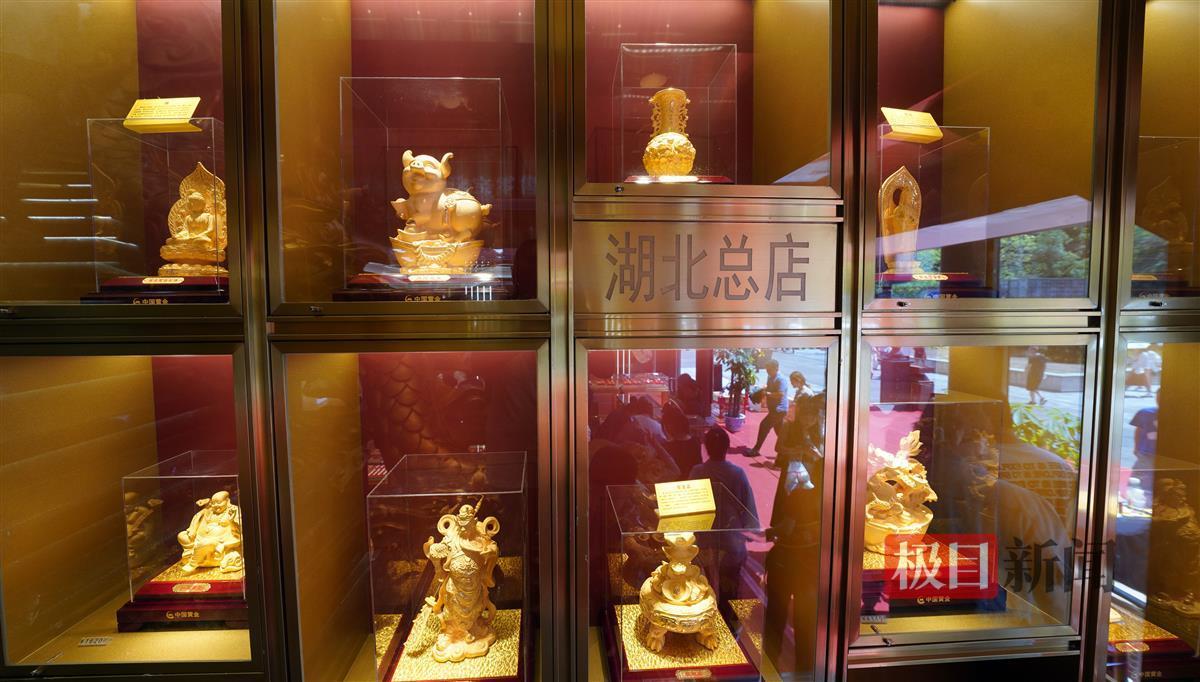 近日开业的中国黄金湖北总店,在汉口江汉路步行街上,如皇宫般辉煌,金灿灿的黄金楼设计非常抢眼,成为江汉路上的新地标。