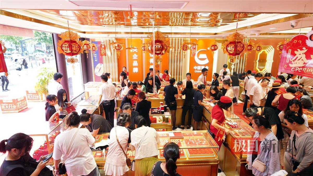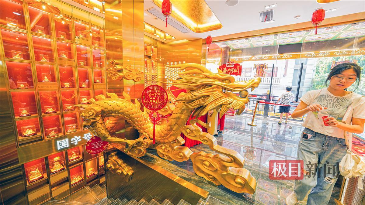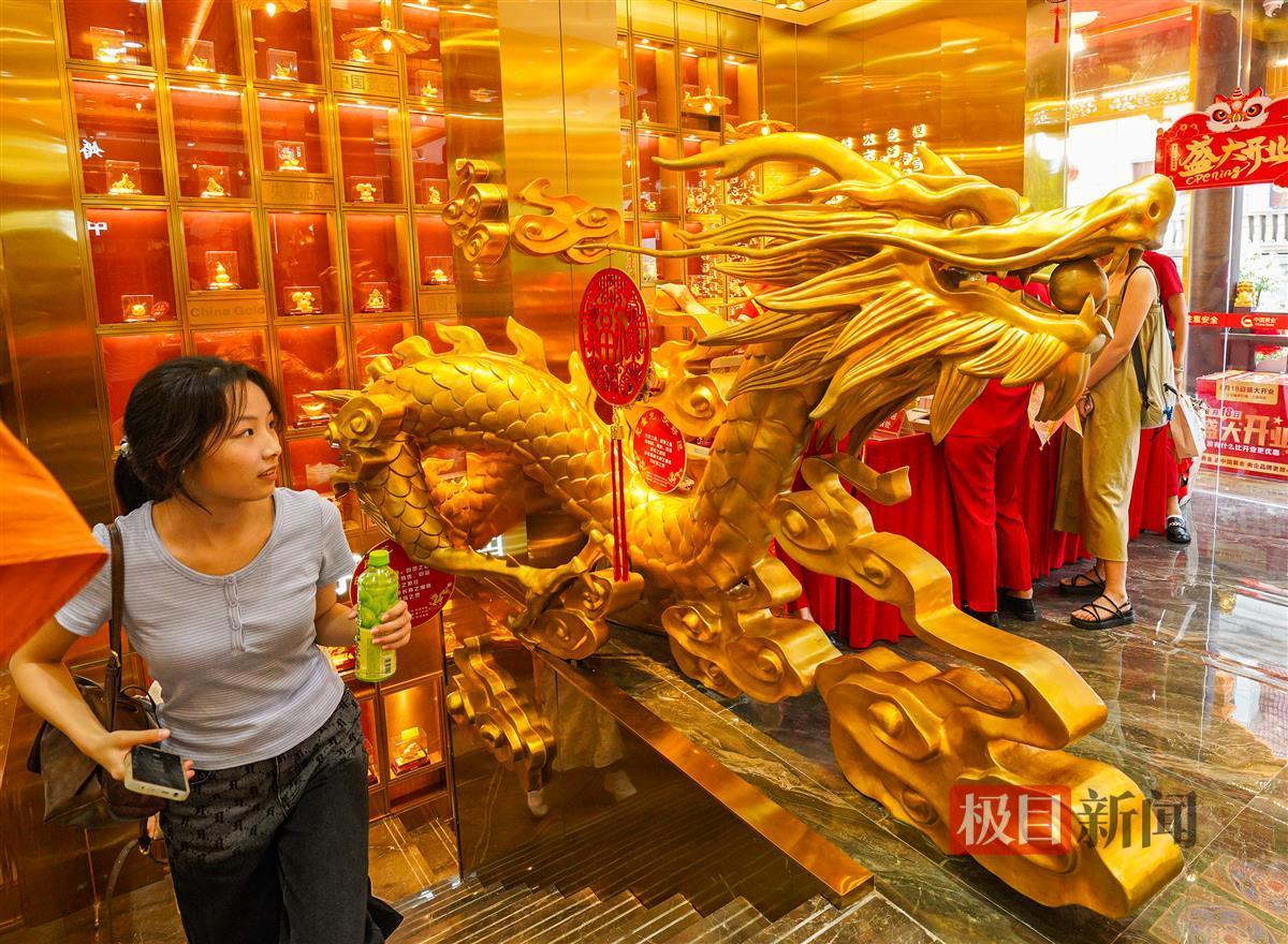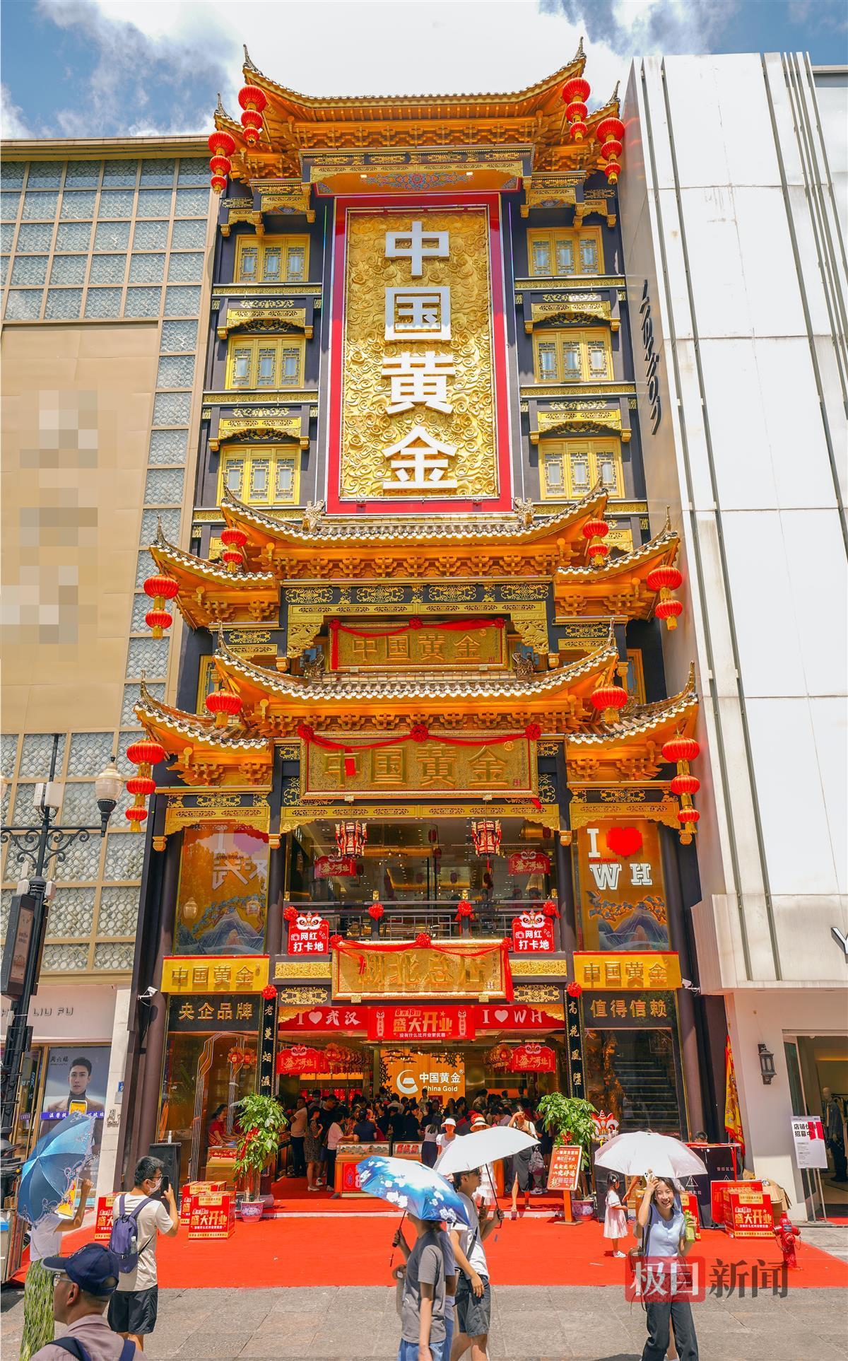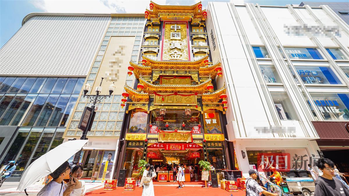 8月23日,在阳光的照耀下,黄金楼熠熠生辉,别样锋芒全力绽放,震惊路人,不少人拍照、打卡。店内也是金色满堂,吸引了大量的人气。