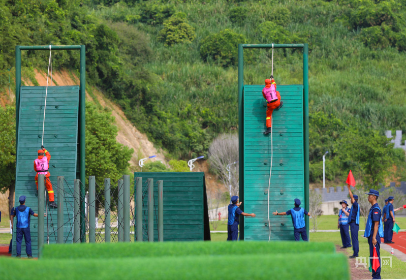 央广网福州8月29日消息(记者龚雯)8月29日,福建省森林消防总队2023年“火焰蓝”专业技能比武正在进行。记者走进位于福州市的比武训练基地看到,消防员们在炎热天气下,激烈地开展专业技能综合竞技和野外生存与救护竞技,一展“火焰蓝”实力与风采。