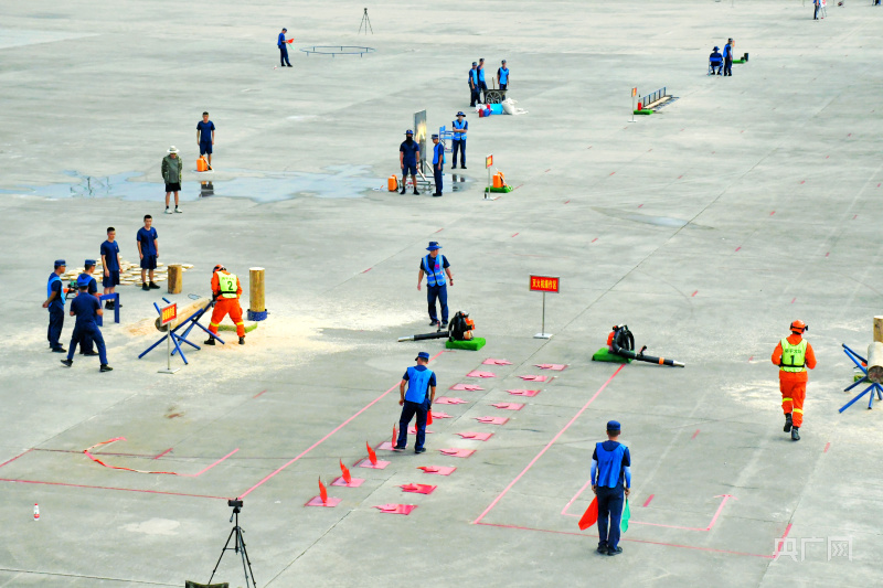 专业技能综合竞技现场,比武队员需依次完成7个区域的操作项目(央广网记者龚雯摄)