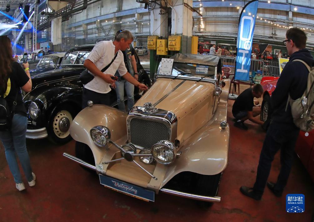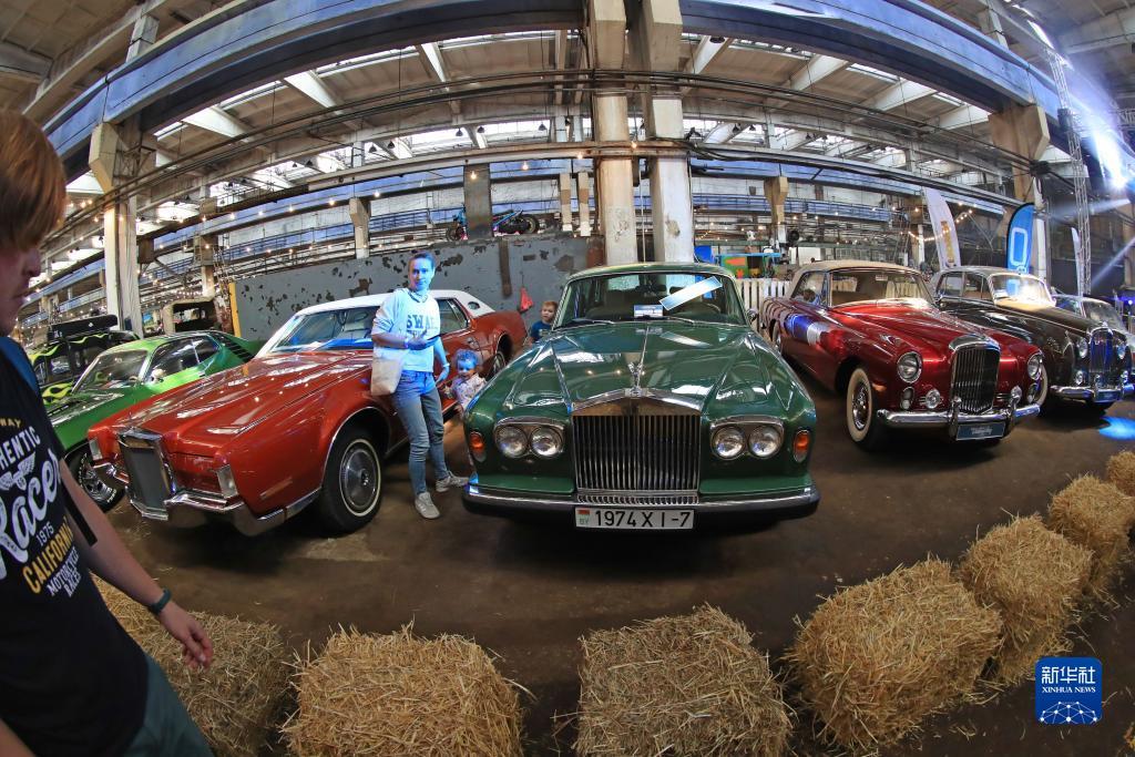 9月2日,人们在白俄罗斯明斯克参观老爷车。