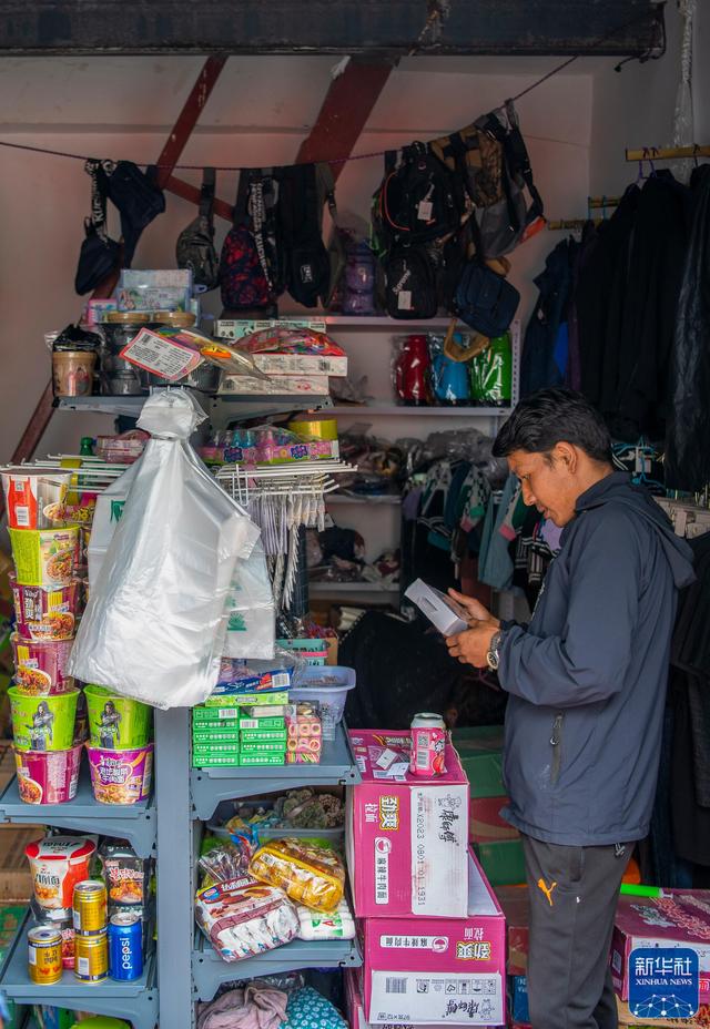 ↑尼泊尔边民在樟木口岸互市贸易市场选购商品(9月9日摄)。