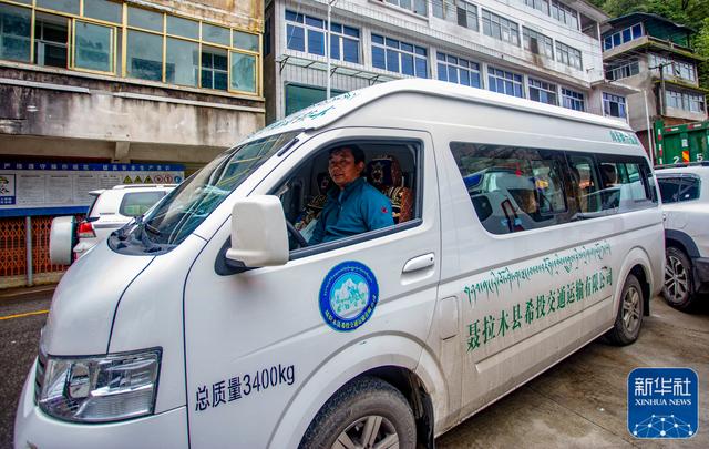↑驾驶员旦增尼玛运营的旅游车负责接送中国游客往返樟木口岸与聂拉木县城(9月9日摄)。樟木口岸恢复客运功能后,他每天都要在这条线路上跑4、5个来回。