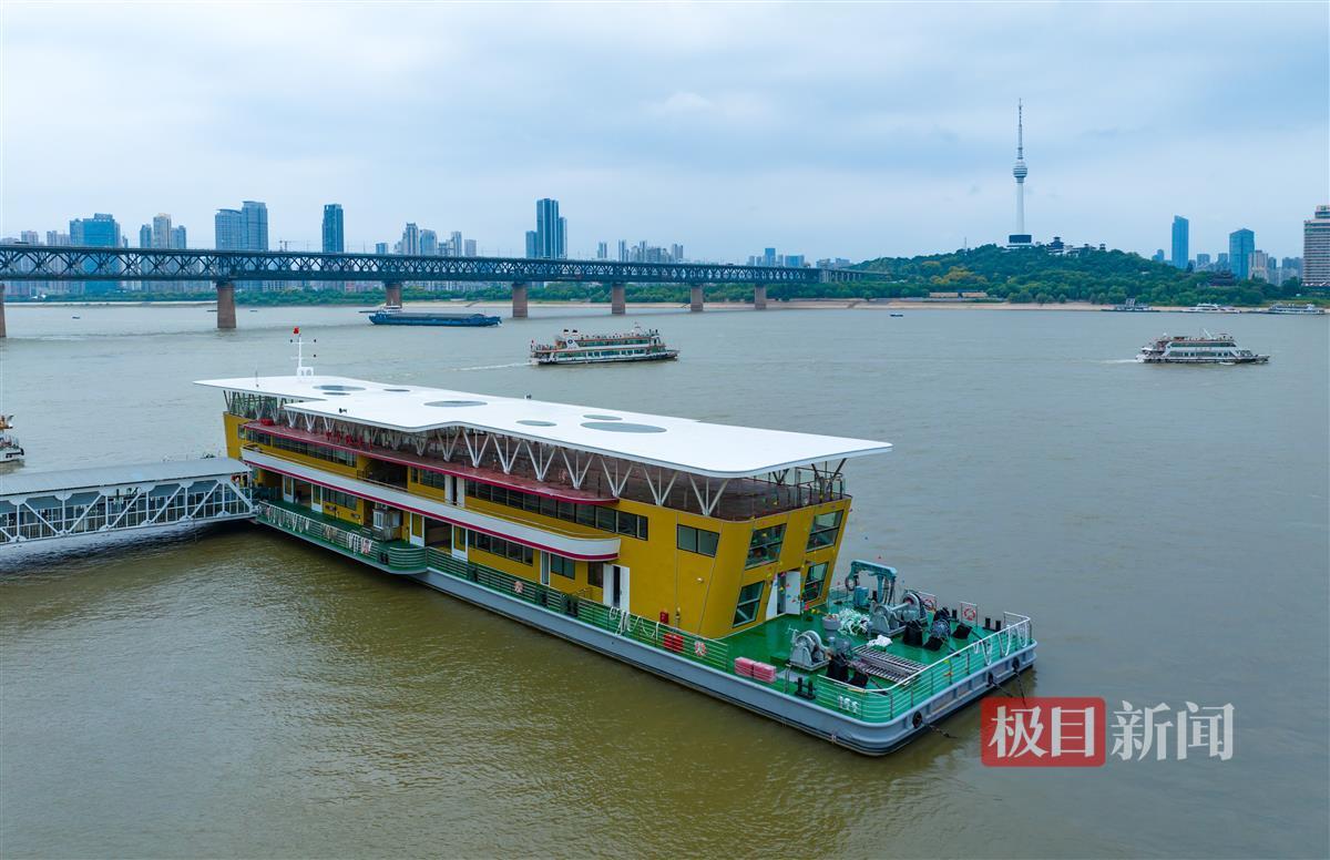经过十余天升级改造,武汉武昌中华路码头新建的90米长“中华路趸1”趸船于9月12日投入试运营。当日,极目新闻记者在现场看到,新趸船总长90米,上层建筑共3层,从下至上依次为乘客区、商务服务区和全景观光平台。新趸船还配备2座大功率充电桩,可直接对接新能源船舶充电。