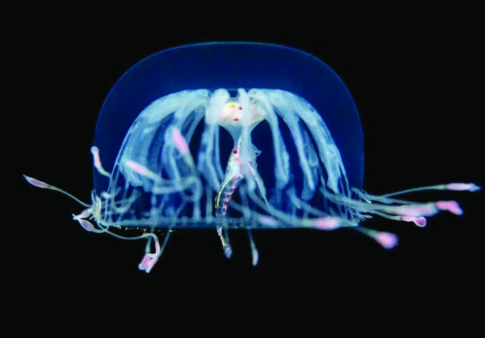 张帆在水下拍摄时偶尔会被水母蜇,“来自海洋生物的袭击非常少见,绝大多数的问题可能是自身的疏忽。”张帆说,“有时候你特别专注地拍摄,追着生物一路游,结果可能是你周围没灯了,也没人了。如果你心理素质不好的话,会很慌。”