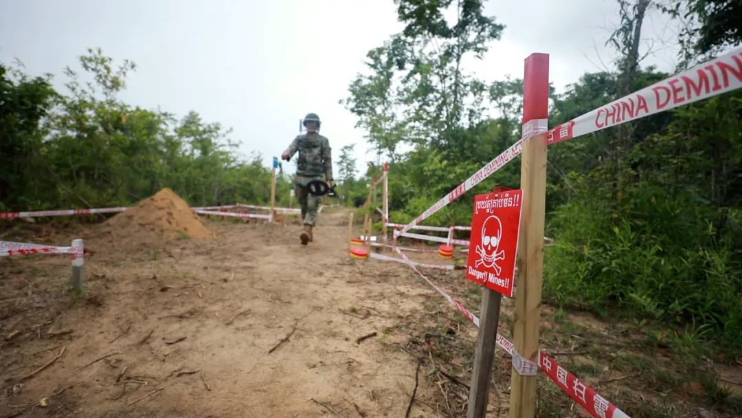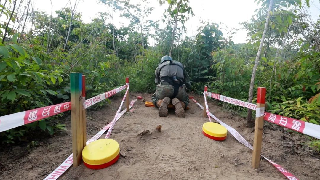 这片雷场位于柬埔寨王家军多国维和部队培训学校的后山,上面植被茂密、灌木丛生。据柬埔寨扫雷行动中心负责人介绍,该雷区是柬埔寨内战时期遗留下来的,已有几十年的历史。由于缺乏相关的雷场资料,战后一直未清排,后又被用作实弹射击场,导致这里危险程度极高。曾有3人在这片雷场失去生命,10余人受伤。
