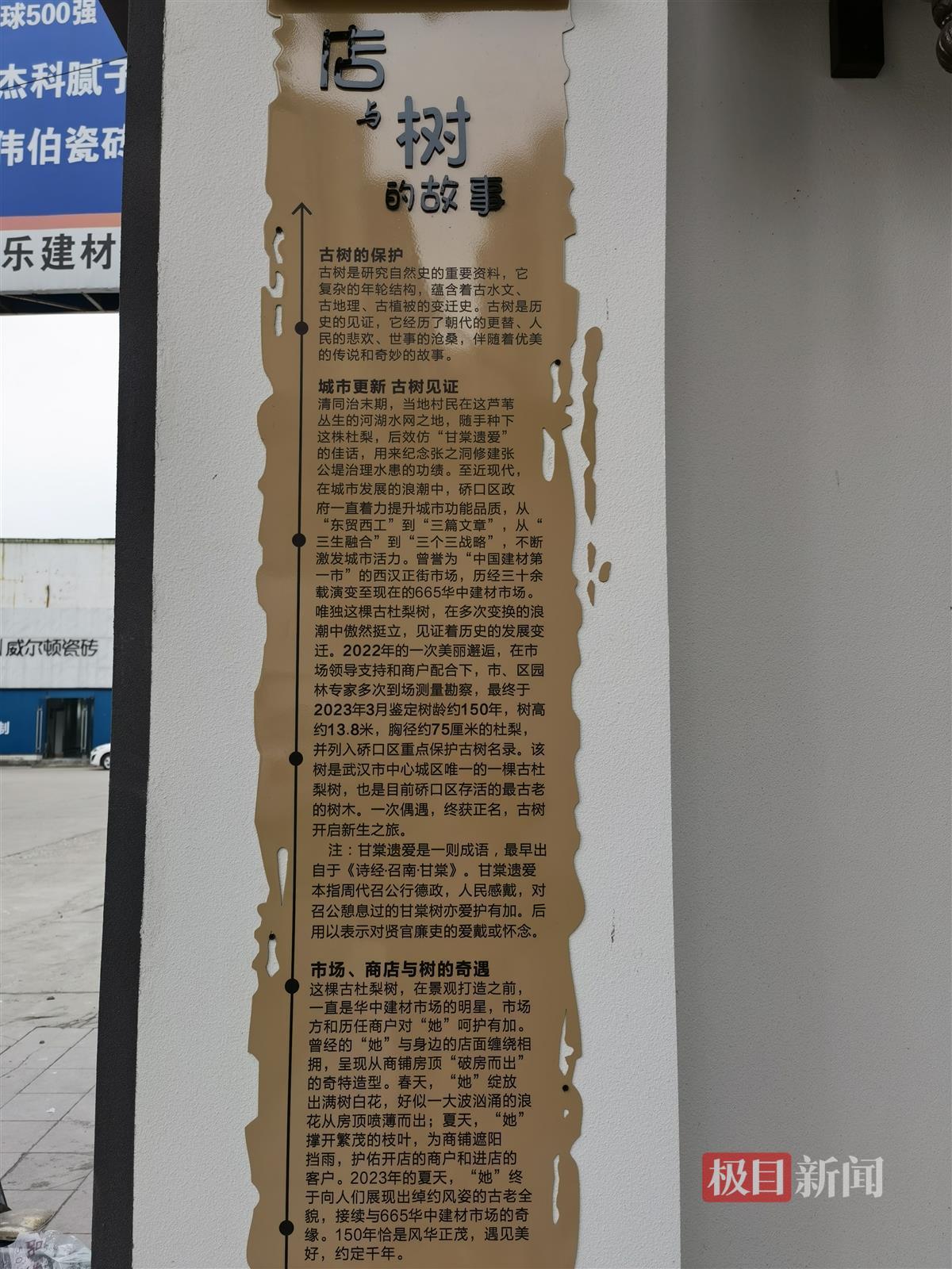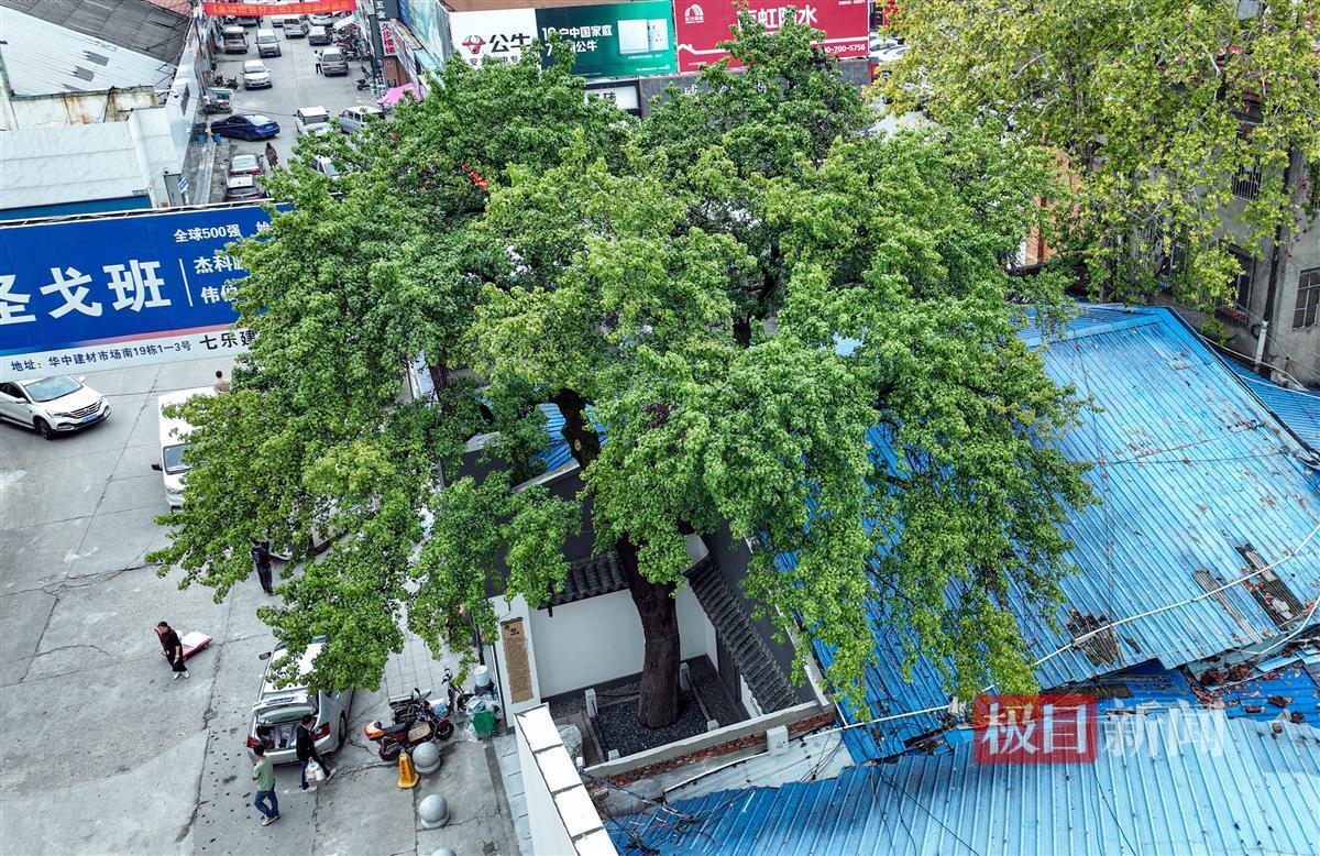 今年年初,在武汉硚口一家建材市场内,一棵在店铺内部破屋顶而出的古树引起了一位热心市民的注意。
