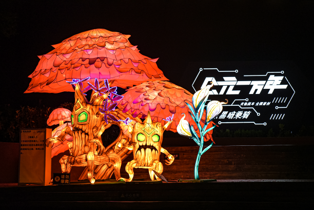 “爸爸,你看!这个怪物会动,在和我打招呼呢!”“这个大眼睛还会闪!”9月8日晚,在西安市白鹿原影视城内创意灯光秀的现场,一个小朋友指着景区内的怪兽灯,拉着爸爸的手激动地喊道。