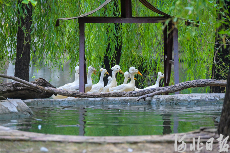 9月25日,几只凤头白鸭在嬉戏游玩。