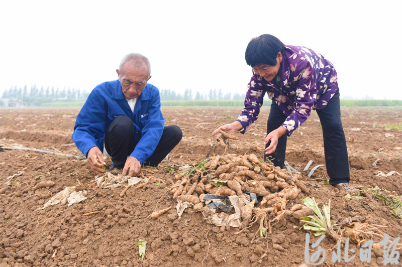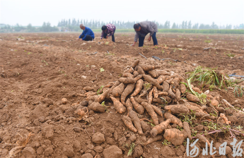 9月26日,农民在南宫市崔家屯村中药材种植基地收获地黄。