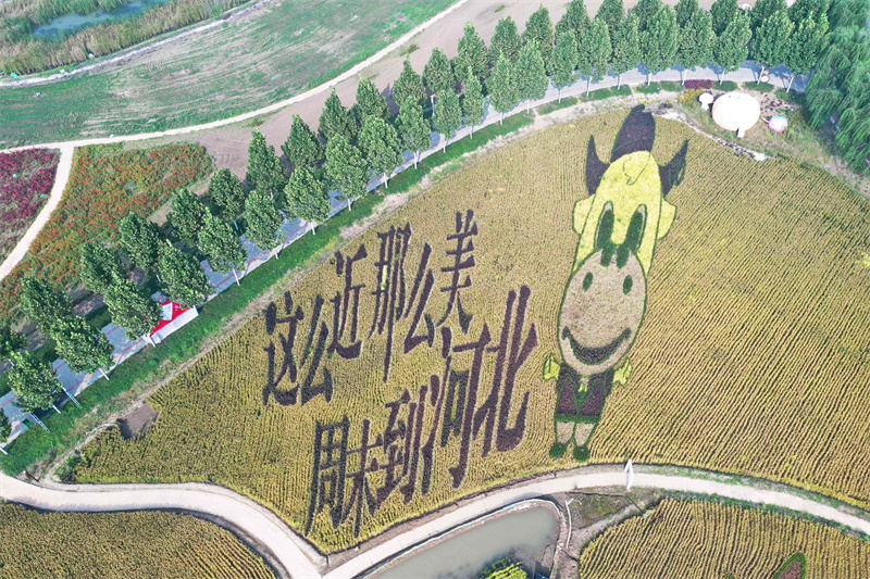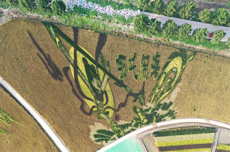 近日,河北省保定市徐水区神农现代农业示范园打造的五彩稻田画成为一道独特风景线。从空中俯瞰,一幅幅精美的稻田画在广阔的大地上铺展开来,勾勒出丰收壮美景象。新华社记者朱旭东摄