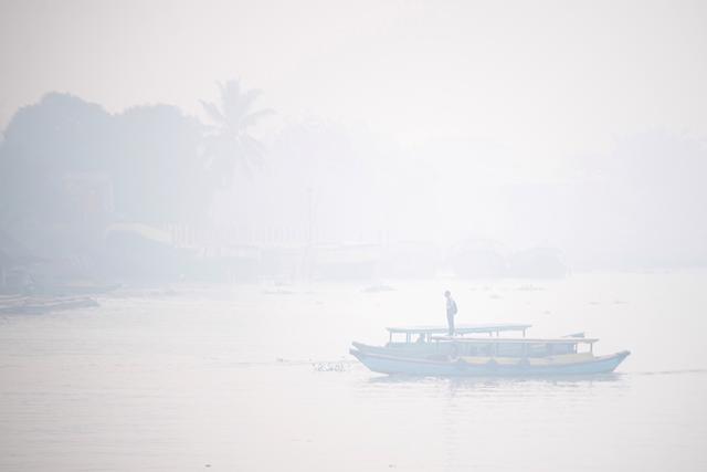 因附近森林火灾影响,印度尼西亚南苏门答腊省巨港市近日遭遇雾霾天气。