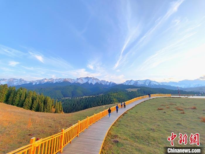 10月4日,新疆奇台县江布拉克景区披上了深秋的色彩,雪山洁白无瑕,雪岭云杉苍劲挺拔。金秋时节,江布拉克景区迎来最美季,山色别有韵味,吸引大批游客前来游览体验。江布拉克景区位于天山北麓、准噶尔盆地东南缘,意为“圣水之源”。