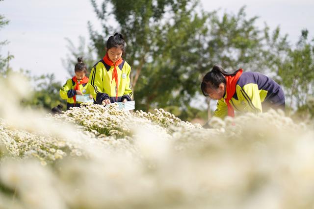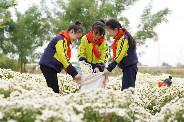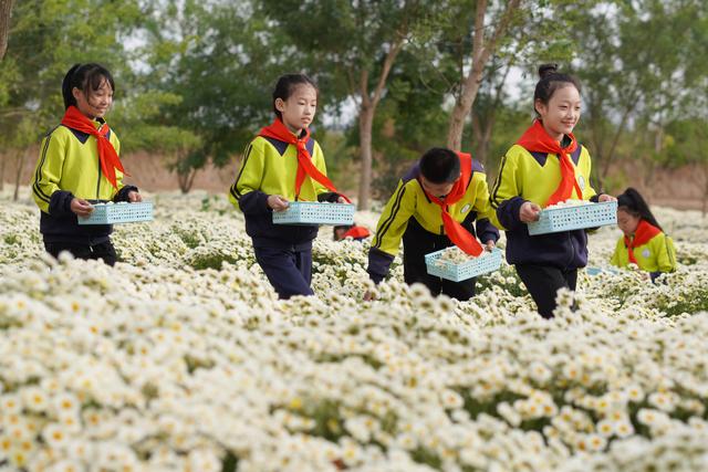 金秋时节,河北省邢台市内丘县五郭店中心小学组织学生走进菊花种植基地,体验菊花采摘,学习农事知识,感受劳动的艰辛与快乐,促进学生全面发展。