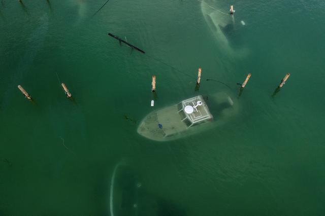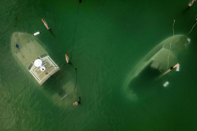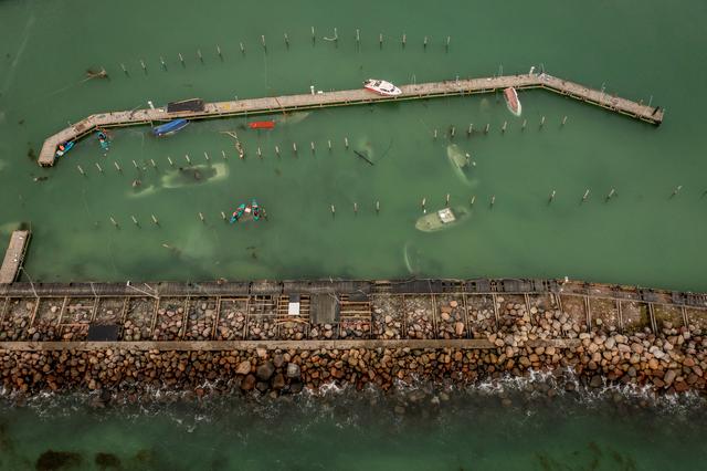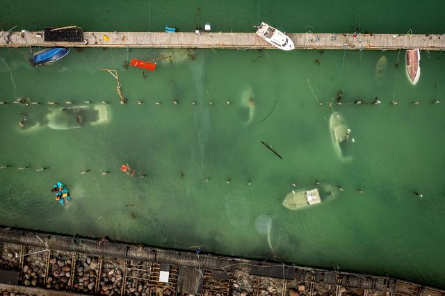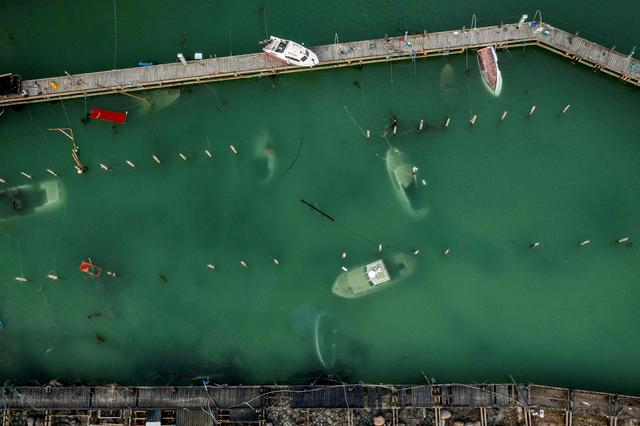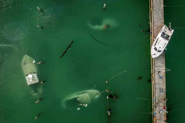这是10月22日在丹麦勒兹维的一座码头拍摄的沉没的船只。新华社/路透