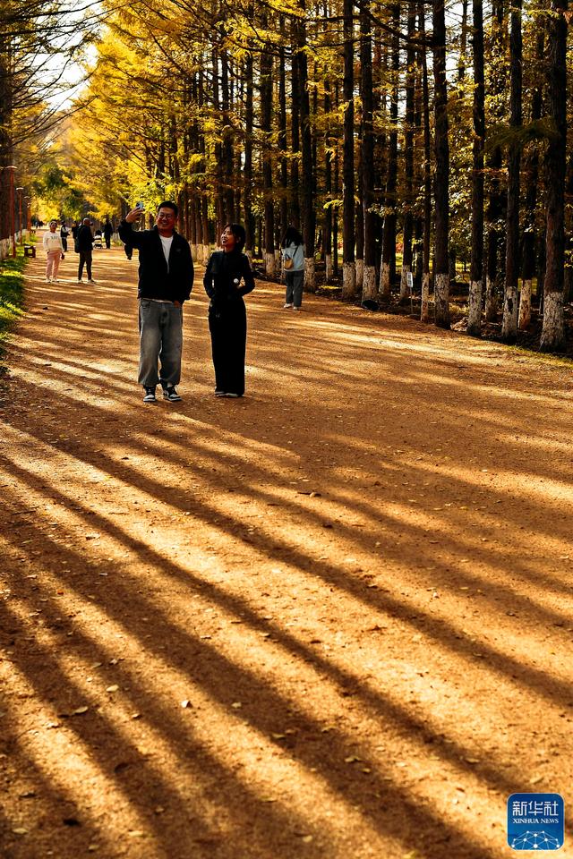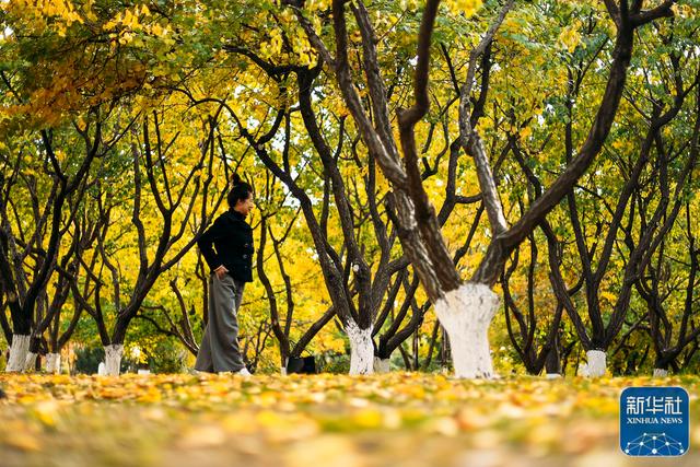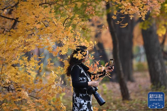 ↑市民在长春市百木园散步拍照(10月19日摄)。新华社记者 许畅 摄