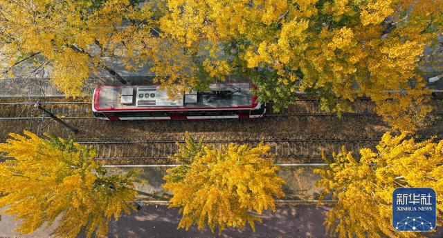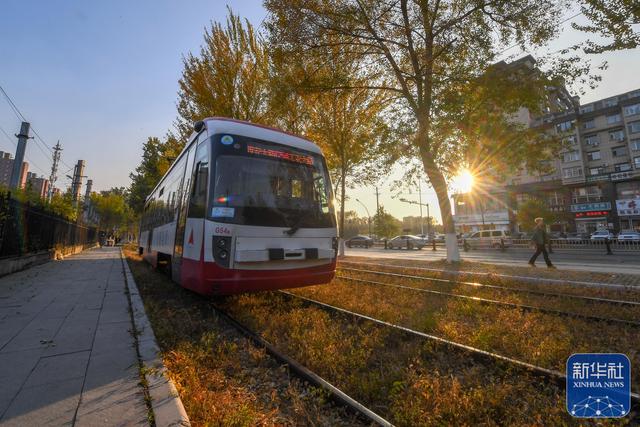 ↑10月24日,一辆电车行驶在长春市春城大街。新华社记者 张楠 摄