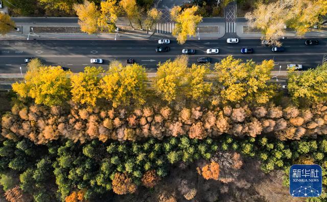↑这是10月24日拍摄的长春市延安大街秋景(无人机照片)。新华社记者 颜麟蕴 摄