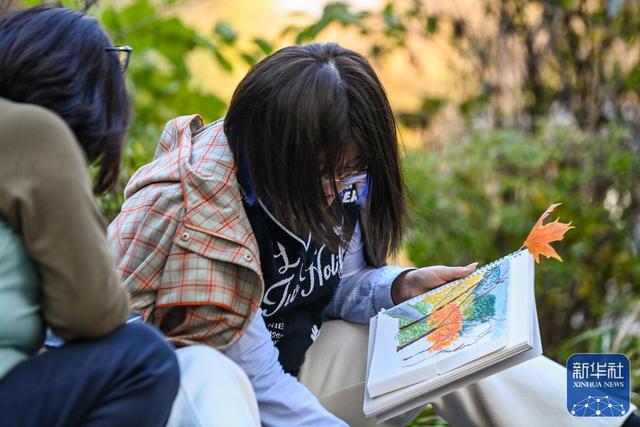 ↑10月24日,市民在长春市南湖公园为秋景作画。新华社记者 颜麟蕴 摄