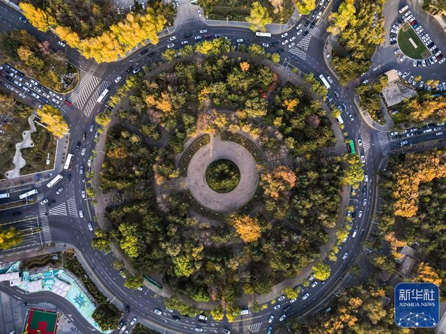 ↑这是10月24日拍摄的长春市新民广场秋景(无人机照片)。新华社记者 颜麟蕴 摄
