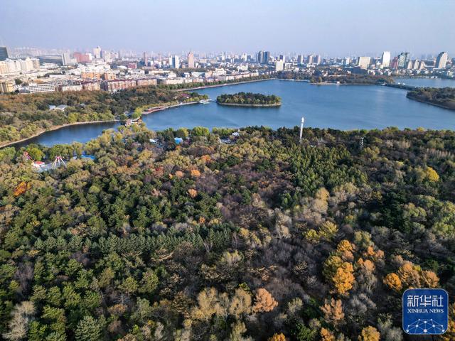 ↑这是10月24日拍摄的长春市南湖公园秋景(无人机照片)。新华社记者 颜麟蕴 摄