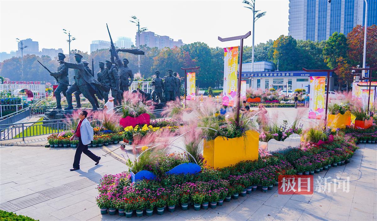10月30日,武汉首义广场金风飒飒、菊韵飘香,2023武汉第40届金秋菊展正在武昌首义广场、沙湖公园、汉口江滩公园、汉阳钟家村等地火热布展中。