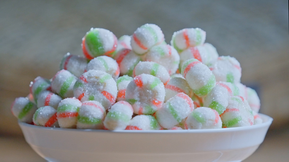 红绿相间的线条,勾勒出一个圆圆的精致小瓜,一口咬下,儿时的甜蜜快乐瞬间弥漫——小瓜糖,儿时幸福记忆的原点。在云南晋宁,寻找甜蜜的童年回忆。