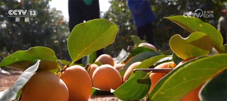 总台记者谭海梅:霜降过后又到了柿子成熟的季节,我现在是在陕西富平县,这里地处黄土高原和关中平原的过渡地带。因为昼夜温差大、光照充足,所以这里也是闻名的柿子优生区。一园接一园的大尖柿挂满枝头,也是富平乡间独有的秋韵。