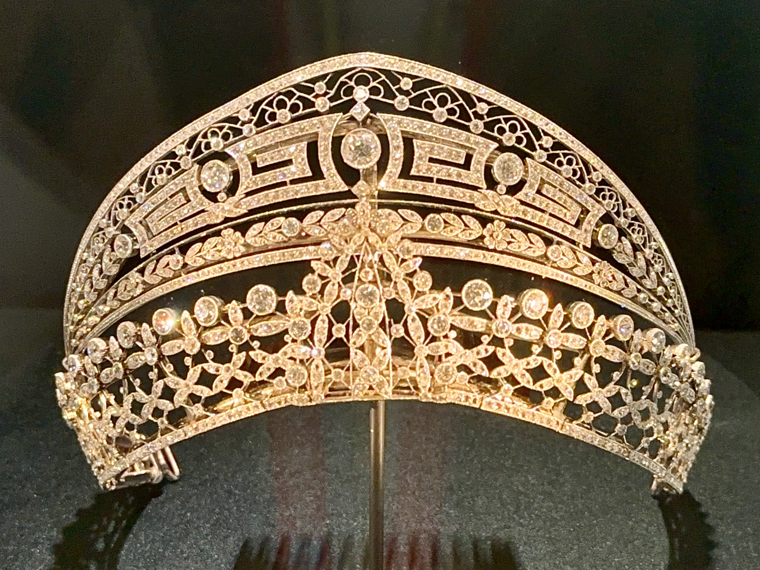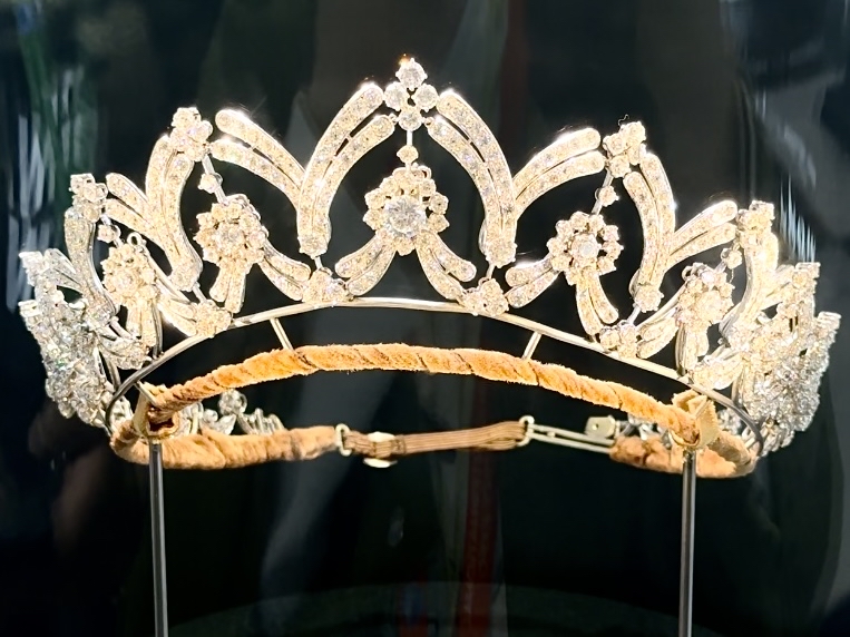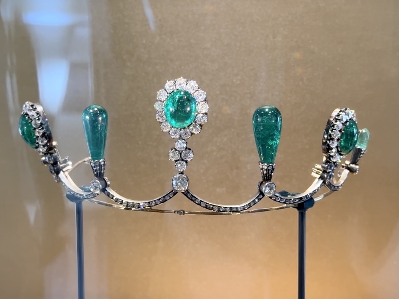 此外,还有希腊回纹冠冕、钻石花叶冠、祖母绿冠冕、花结风格头饰和来自波旁家族的百合冠冕等得以呈现,引得参展者挨个拍照留念。