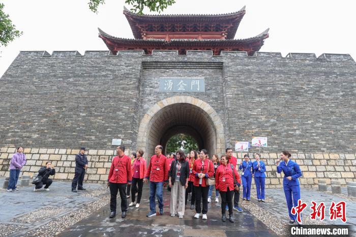 图为第32届世客会客属宗亲代表参观赣州宋代古城墙。刘力鑫摄