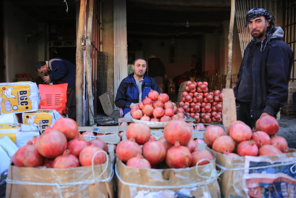 11月10日,在阿富汗首都喀布尔,一处摊位售卖产自阿富汗南部坎大哈省的石榴。新华社发(塞夫拉赫曼·萨菲摄)