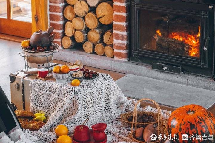 此时的九如山启动了“开炉节”。复古木屋火炉内松木熊熊燃烧,红色火苗飞舞跳动,炉上烤物香气四溢,游客们尽享新冬银装素裹和温暖炉火