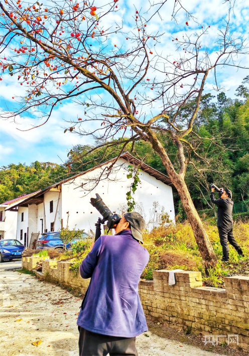 央广网新余11月12日消息(记者王一凡)近日,摄影爱好者在江西省新余市分宜县钤山镇礼冠村拍摄红柿子。立冬前后,礼冠村村民房前屋后和山沟里的柿子树结满红灯笼似的柿子,成了初冬时节乡村一道亮丽的风景线。