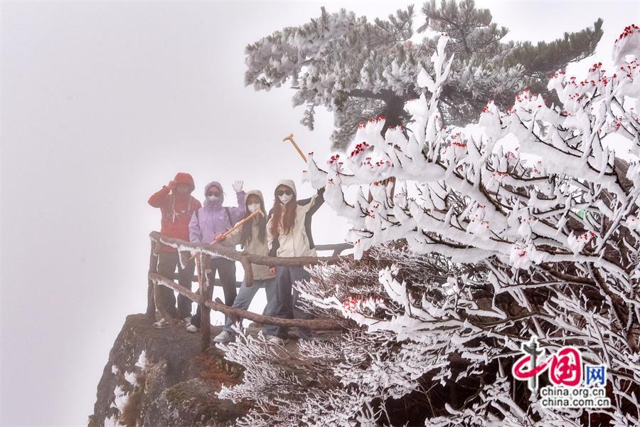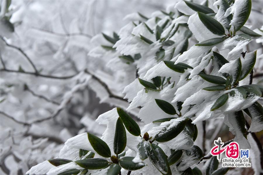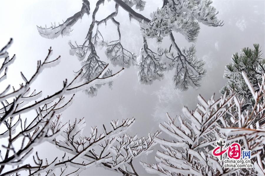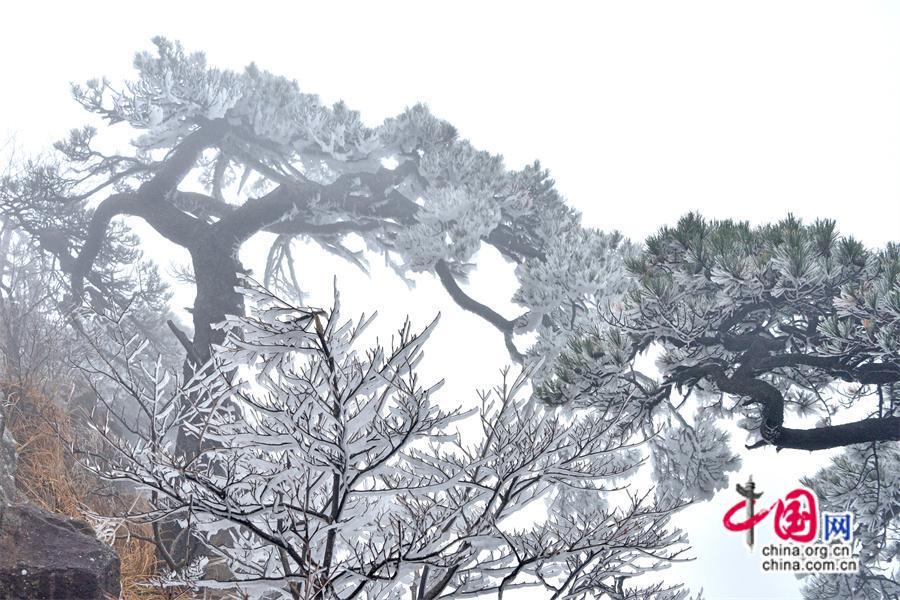 中国网旅游11月13日电 11月12日,受冷空气影响,安徽黄山风景区气温骤降至零下2度以下,出现了今冬首场神奇的雾凇景观,雾凇的出现将黄山装饰得宛如童话般的世界。