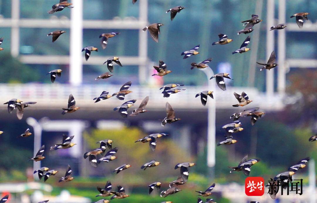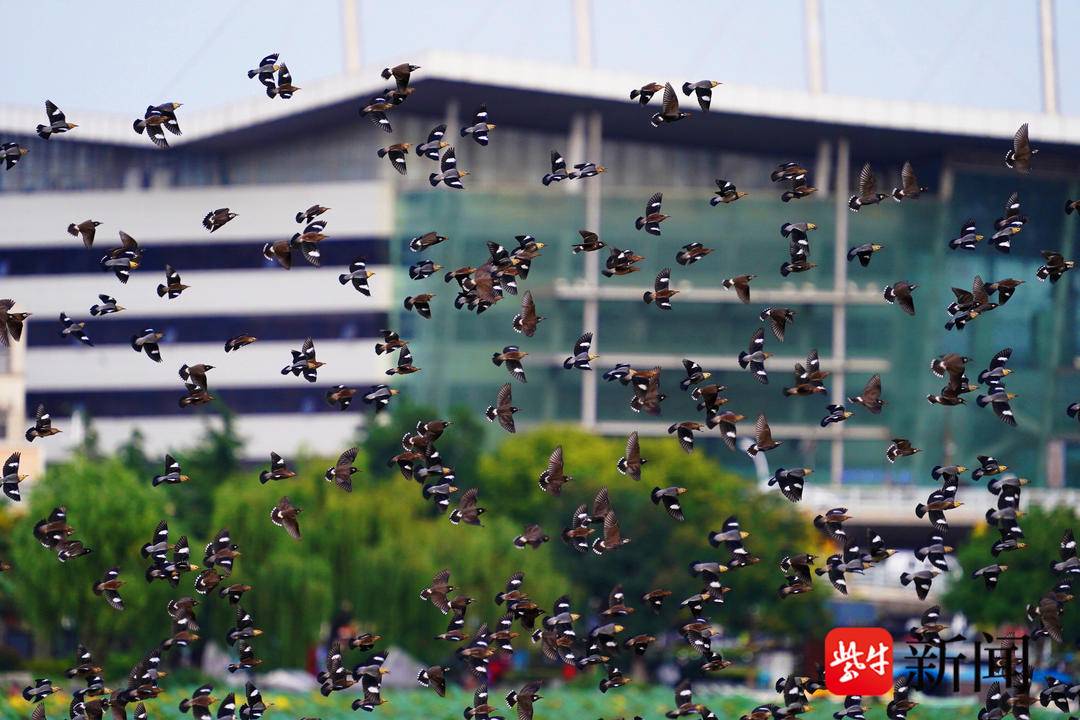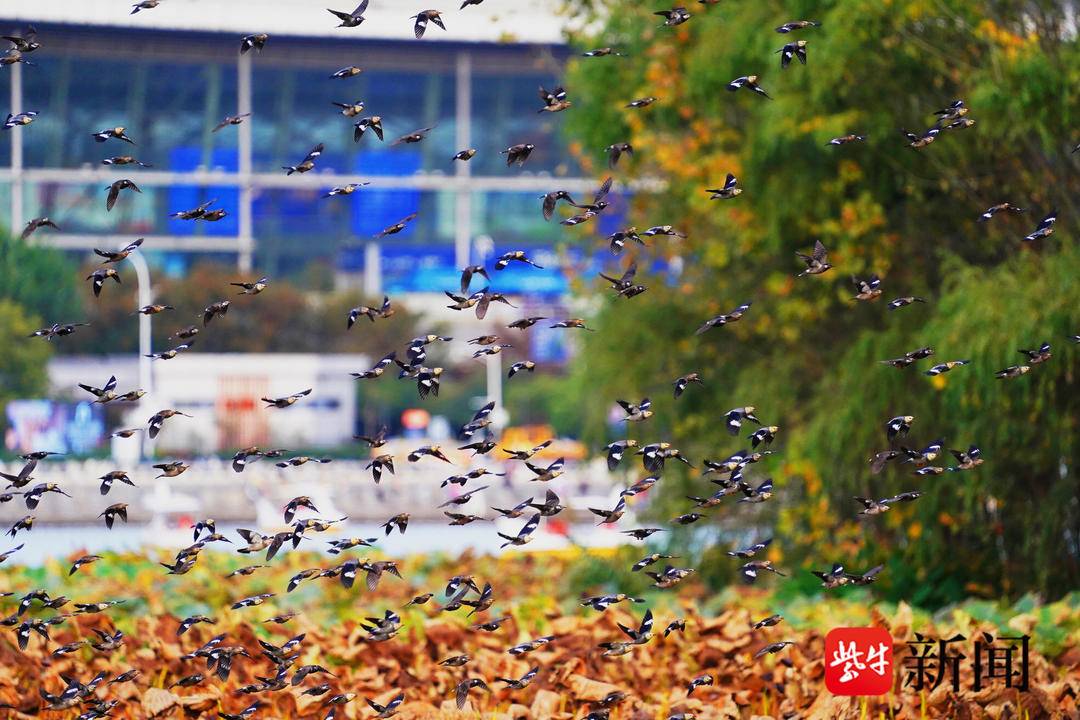 扬子晚报网11月13日讯(通讯员武家敏记者梅建明)连日来,在南京玄武湖北面的湖中小岛上,有麻雀大小的丝光椋鸟成群聚集,它们时而拍着翅膀在天空盘旋,时而俯冲向湖中洗澡,叽叽喳喳,热闹非凡。