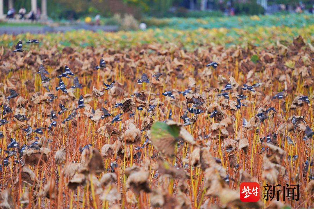 南京一位自然摄影师告诉记者,丝光椋鸟主要以昆虫为食,但在食物相对匮乏的秋季,不挑食的它们一般喜欢以常绿树的果实为食,南京最常见的常绿树就是香樟树果和楝树果。而在南京玄武湖,因食物够多,也吸引了它们“赖”在此地,不愿迁徙。