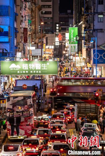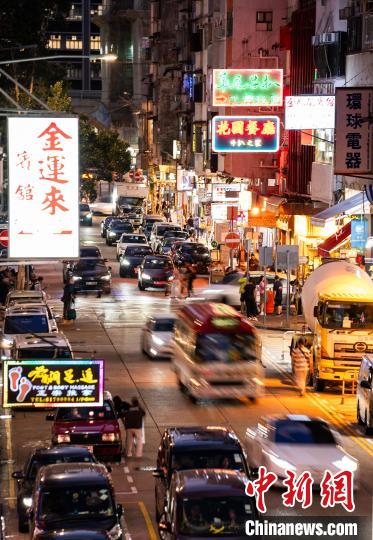 图为九龙半岛旺角附近的各式户外招牌。 中新网记者侯宇摄