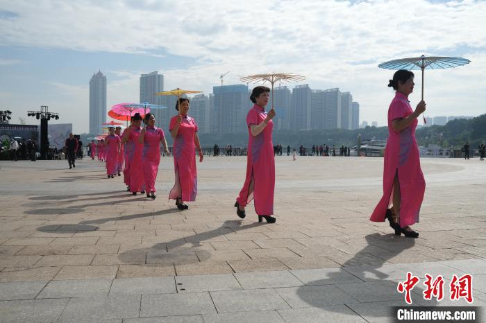 11月19日,1000余名穿着旗袍的女子在南宁市亭子码头上演走秀。这是2023年中国(南宁)旗袍文化艺术盛典之“实景旗袍秀”活动。