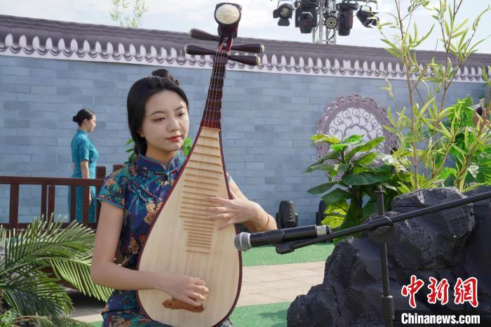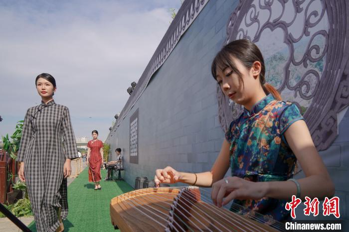 女子穿着旗袍演奏传统乐器。王以照 摄