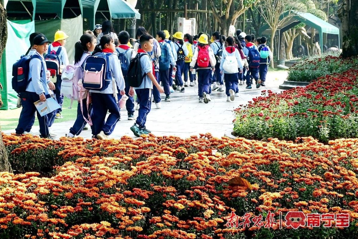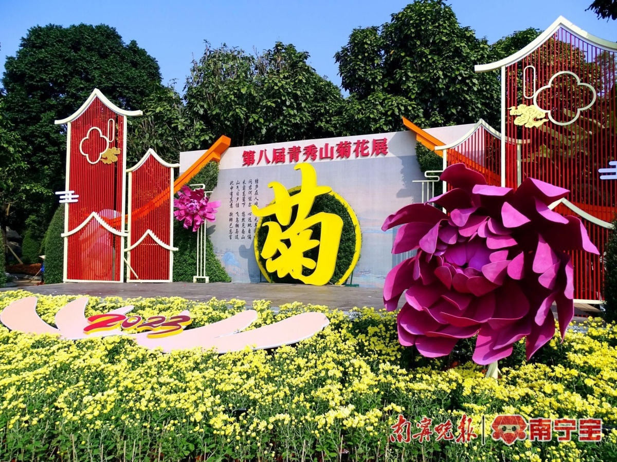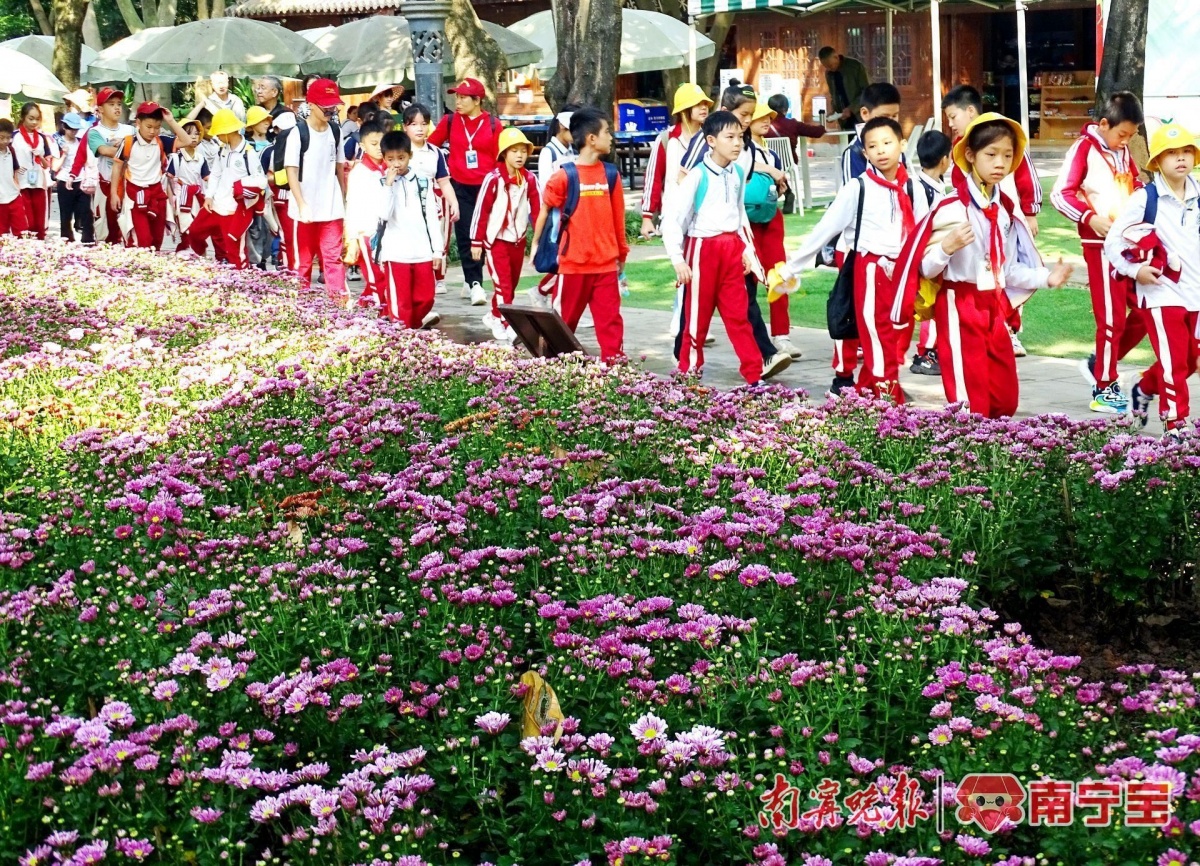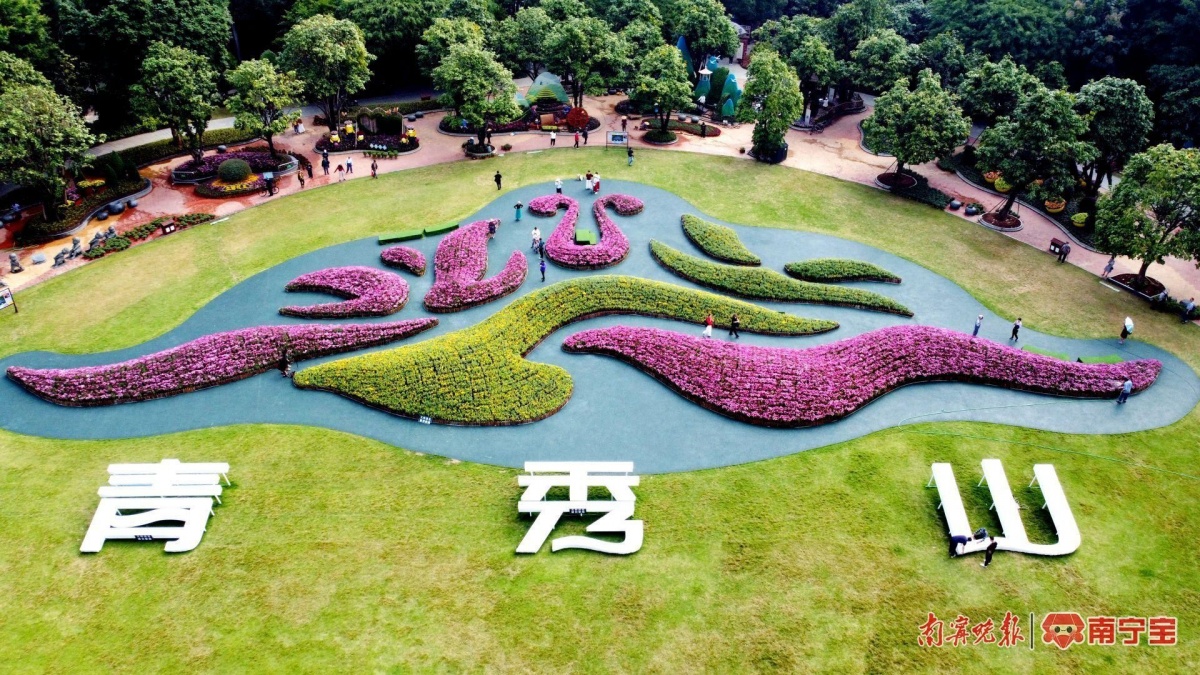 此外,为增加花展景观层次,丰富花展观赏内容,工作人员在东盟友谊园草坪区域布置昼夜可观的巨幅菊花花海景观,该景观以“青秀山logo”作为图案,游客可穿行花海之间,领略小品园艺手法和设计之美,近距离品菊香、叹菊美,展现一幅人与自然和谐共生的美好景象。