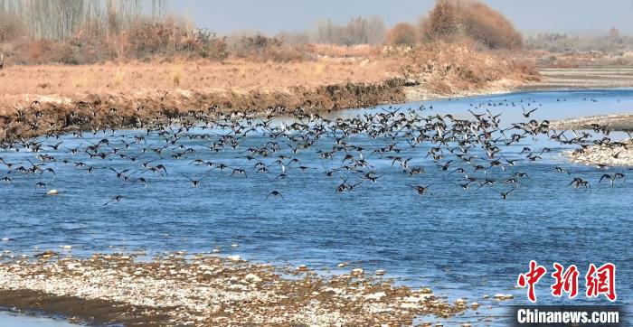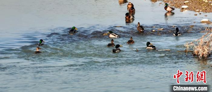甫入冬季,位于新疆温宿县托甫汗镇阿亚克其村边的库玛力克河碧水连天。成群的国家二级保护动物绿头鸭、赤麻鸭在碧绿清澈的河水里悠然觅食,或游戈嬉水,或站在河边的石头滩上休憩,或结对展翅飞掠水面激起的水花四溅,勾勒出一幅人与自然和谐共处的美好画卷。