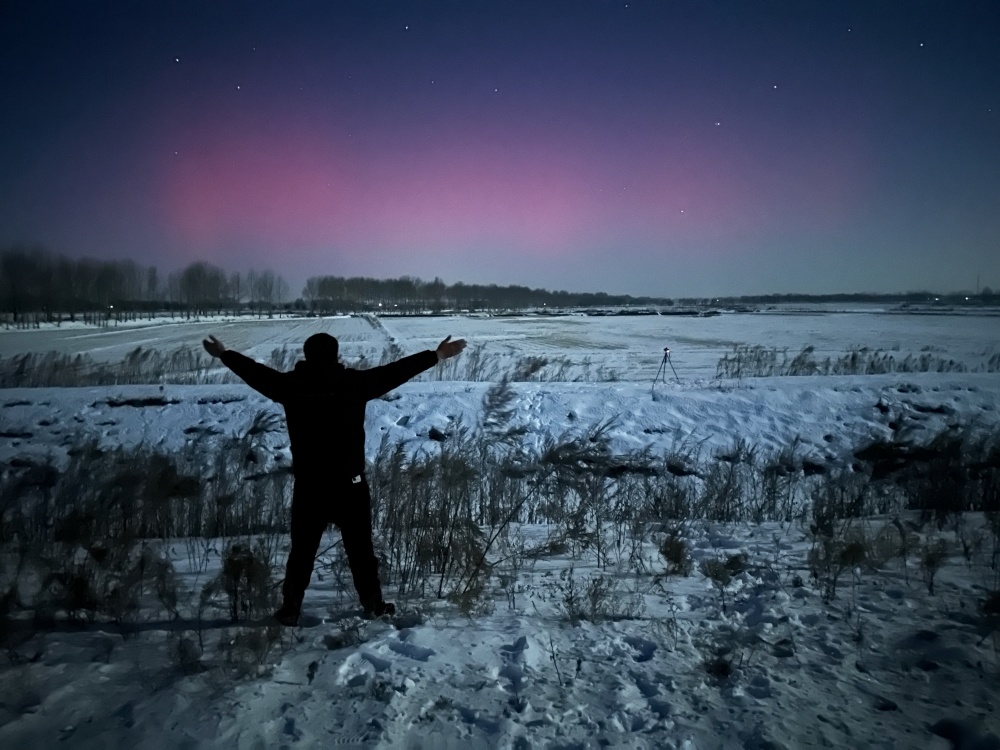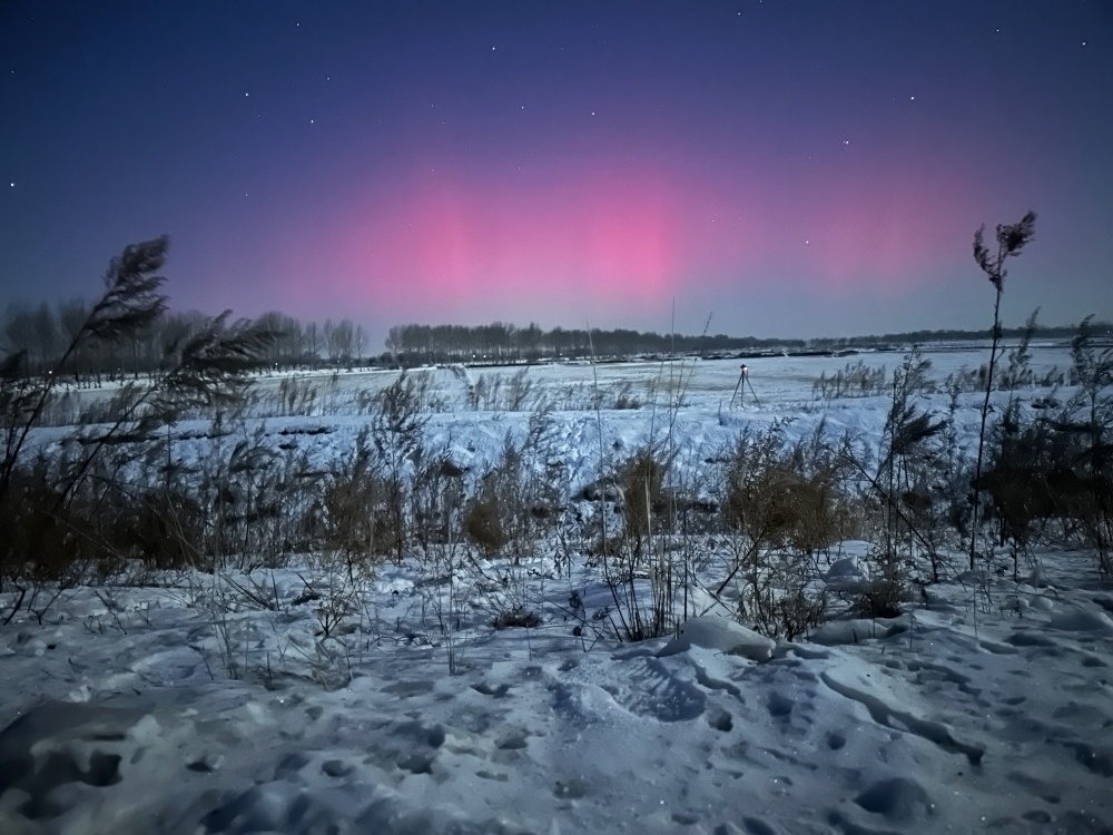 除了北京,北方多地网友发出自己拍摄的极光照片。