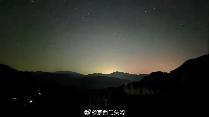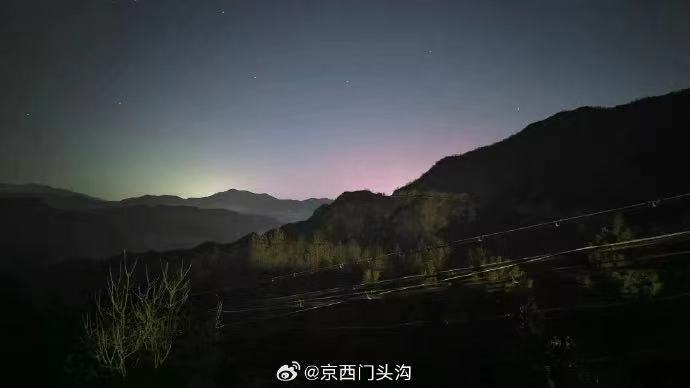 ▲12月1日晚,百花山国家级自然保护区附近拍摄到极光。图/北京市门头沟区政府官方微博