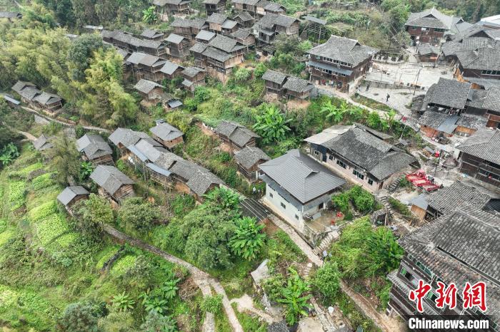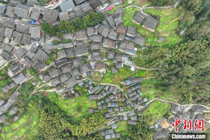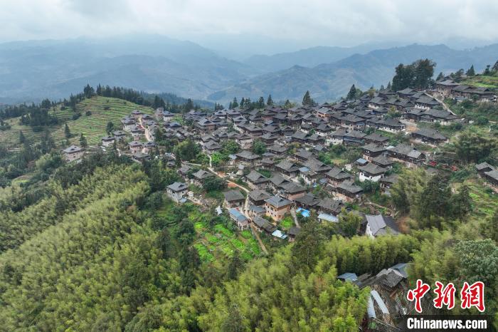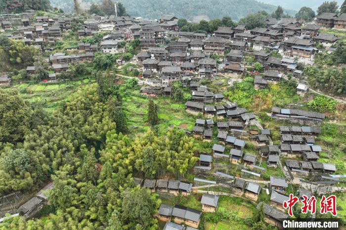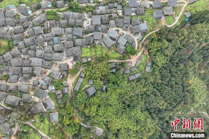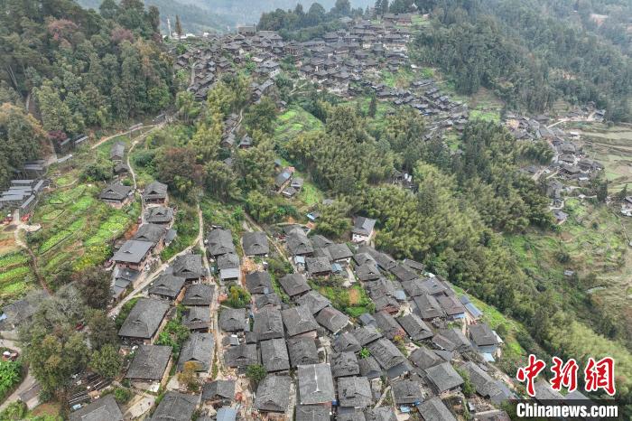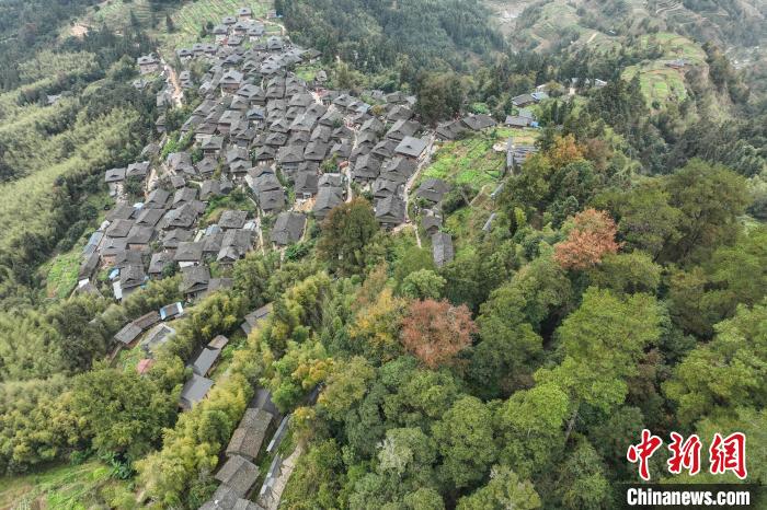 12月2日,航拍岜沙苗寨。 中新网记者瞿宏伦摄