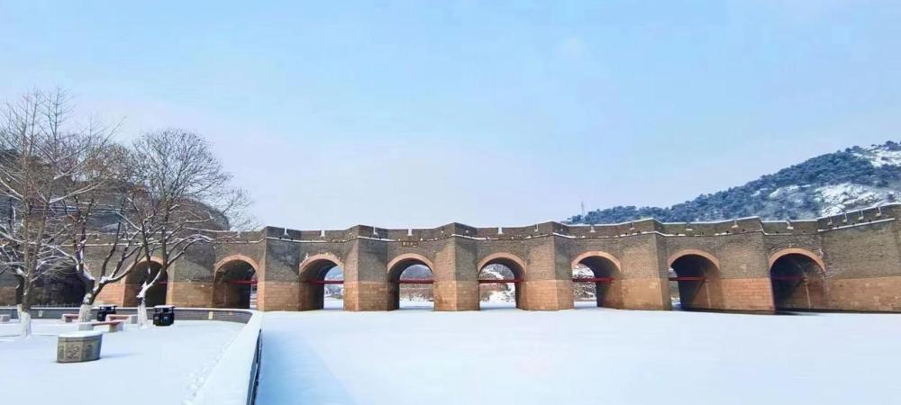 九门口长城坐落在葫芦岛市绥中县李家堡乡新台子村境内,记者来到这里时刚刚下过一场雪,雪后的九门口长城真的可以用“气势磅礴,山舞银蛇,原驰蜡象”来形容,只是九江河水已经结冰。