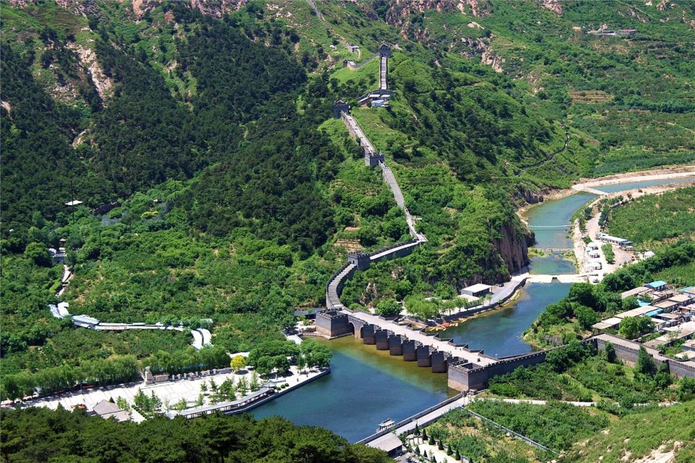 九门口长城的过河城桥独具特色,在百余米宽的河道上,用巨型条石砌起8个梭形桥墩,与两侧的围墙一起形成9个水门。梭形桥墩的设计能够形成交叉火力,增加了防御面积,又能起到一个水压分流的作用。