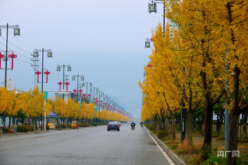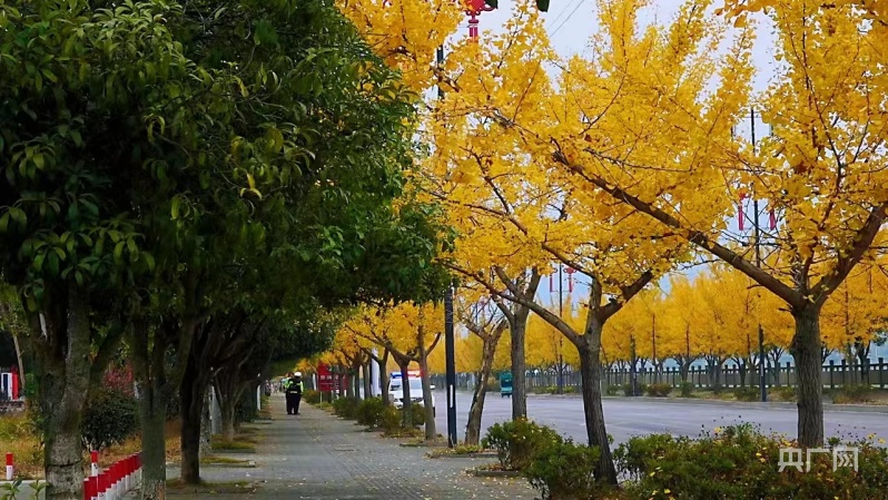 街道两边的银杏树悄然披上了“黄金甲”(央广网发王娟摄)