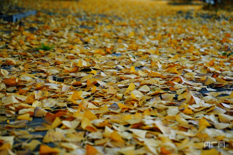 银杏叶随风“舞蹈”,落地点缀,诗意盎然(央广网发黄源汇摄)