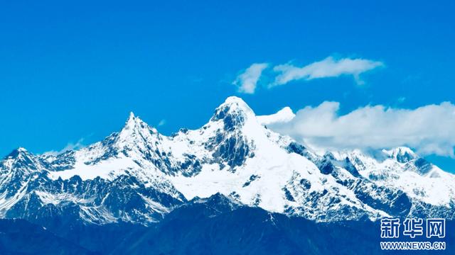 近日,摄影师在德钦县记录下卡瓦格博峰美景,高耸的峰顶被白雪覆盖,与背后的蓝天白云相映,尽显苍茫壮观之美。(完)(德钦县融媒体中心 李春雷)