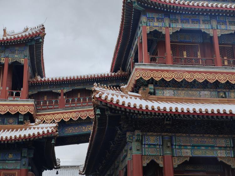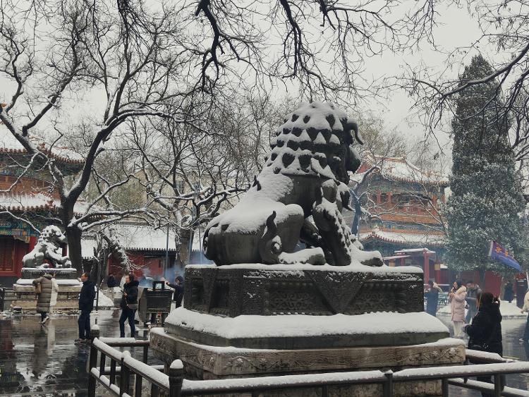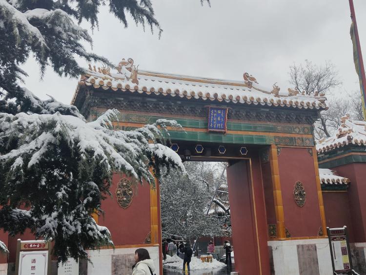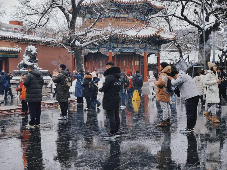 天气寒冷,却丝毫不影响香客们上香的热情。雍和宫内缭绕的烟雾,把寺院衬托得分外宁静而神圣。